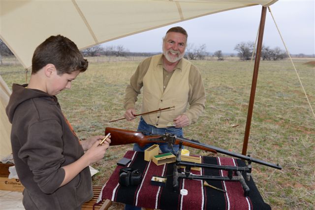 Contestants in the second annual Miss Frontier Texas! Pageant this past April 2013, competed in events including pitching a tent, roping basics, washing clothes on a washboard, chuck wagon cooking, cutting wood, composing an essay on frontier women and saddling a horse. The event that took place at Fort Phantom was shooting a .50 caliber buffalo rifle at a target 400 yards away.